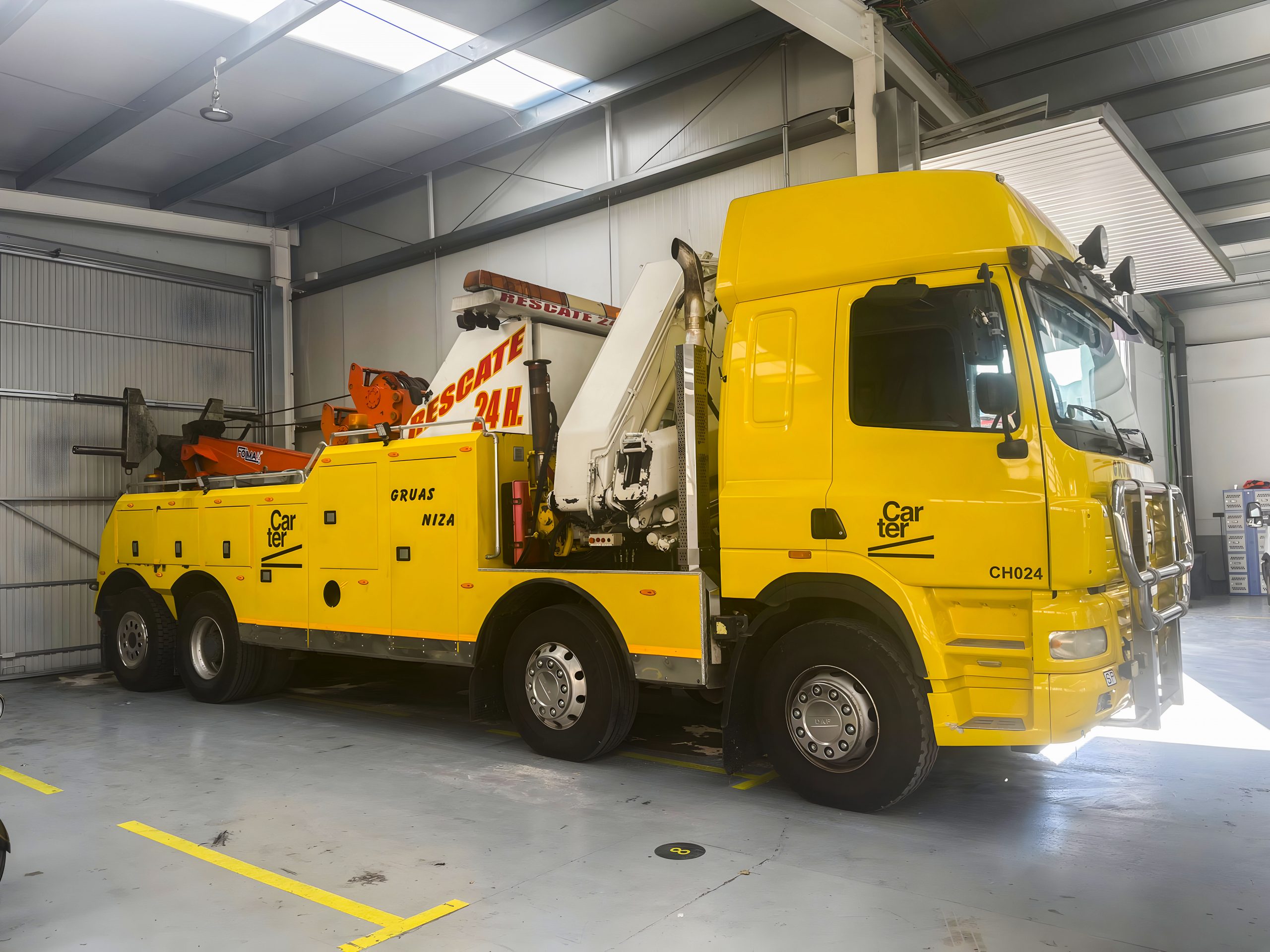 Realizamos traslados y auxilio de vehículos industriales o pesados (camiones, autobuses, etc.). Tenemos dos remolcadoras, dos cabezas tractoras y un furgón taller industrial, equipado con todo lo necesario para realizar reparaciones in situ. disponemos de una grúa de palas grande, especial para coger autocaravanas y furgones. Con las medidas de las autocaravanas, es complicado subirlas a las plataformas por tener mucho voladizo, golpean en la parte trasera contra el suelo, con este tipo de grúa, el servicio se realiza de forma más segura.